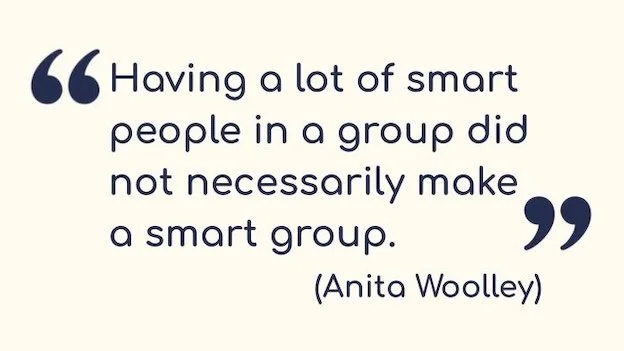 ² Woolley et al (2010) Evidence for a collective intelligence factor in the performance of human groups. Science 330: 686–688.